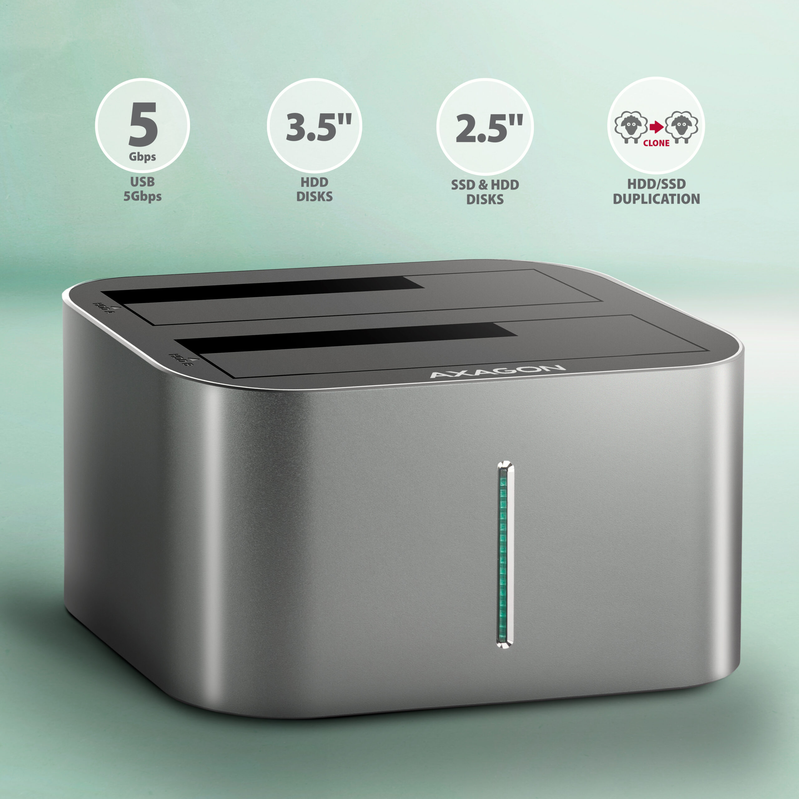 Het model AXAGON ADSA-DC maakt bijvoorbeeld snel kopiëren van bestanden tussen computer en schijven mogelijk. Het is zeer geschikt voor regelmatig back-uppen en het testen van schijven. Het model AXAGON ADSA-M2C maakt het mogelijk om eenvoudig tot twee NVMe-schijven op een computer aan te sluiten. Beide dockingstations maken het klonen van schijven mogelijk, zelfs zonder computer.